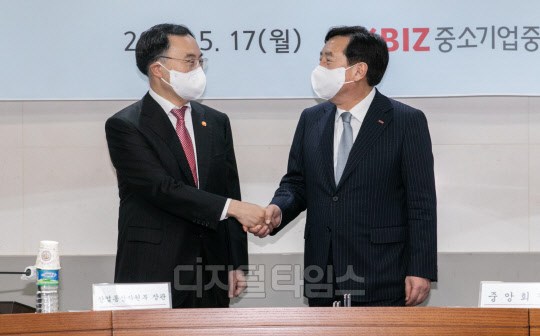 [포토] 김기문 중소기업중앙회장과 만난 문승욱 장관