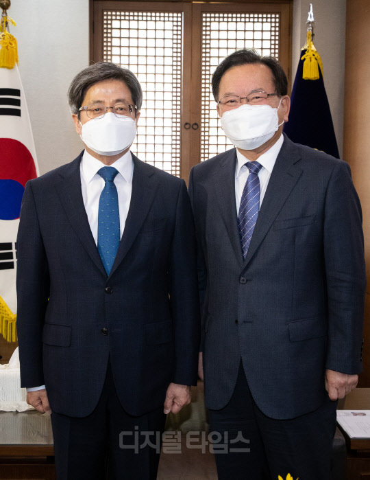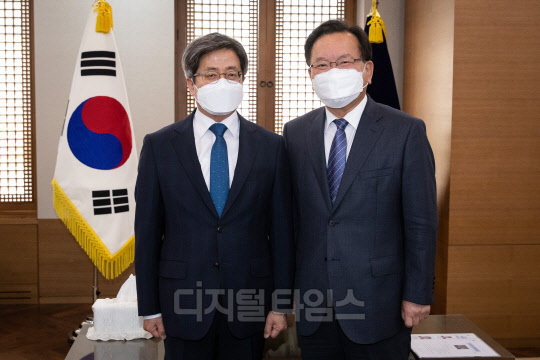 [포토] 김명수 대법원장 예방한 김부겸 총리