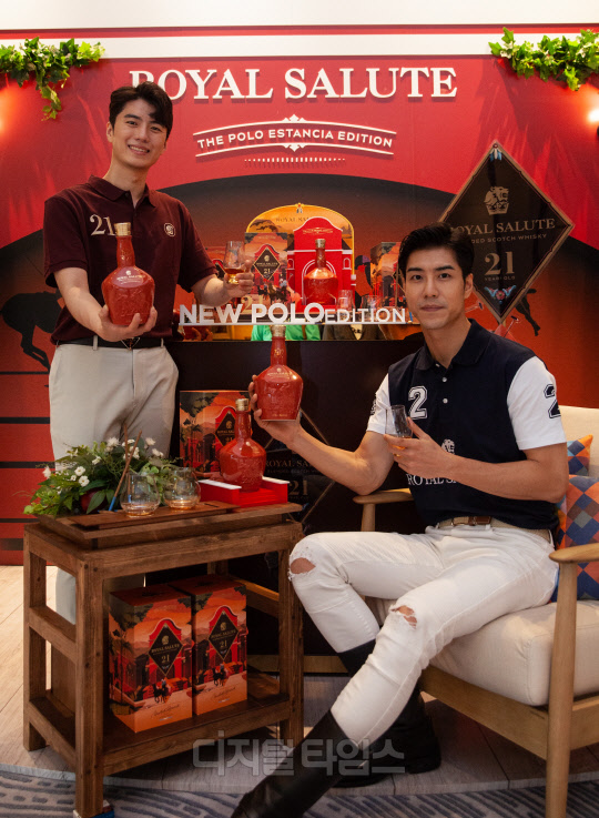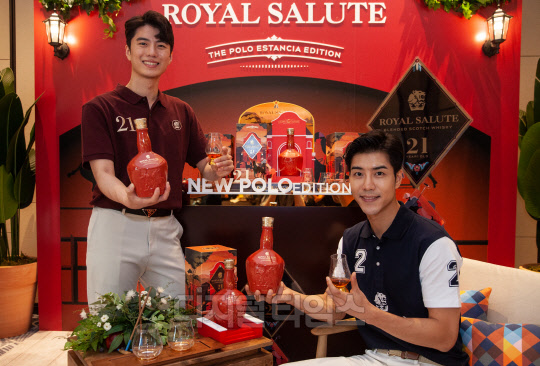 위스키 브랜드 로얄살루트가 9일 서울 여의도 페어몬트 앰배서더 서울 호텔에서 폴로의 고향이라 불리는 아르헨티나의 에스텐시아에서 영감을 얻은 한정판 '로얄살루트 21년 에스텐시아 폴로 에디션'을 선보이고 있다.