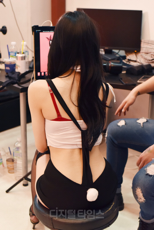 BJ 유화가 경기도 고양시 삼송테크노밸리에 위치한 MAXIM 스튜디오에서 진행된 남성지 MAXIM(맥심) 6월호 '미스맥심 콘테스트' 2라운드 화보 촬영현장에서 포즈를 취하고 있다.
