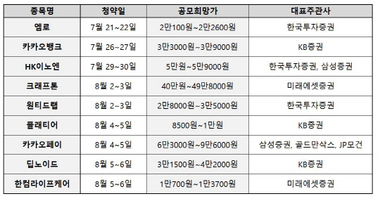 올해 하반기는 역대급 공모시장이 될 것으로 예상되는 가운데, 7말8초에 이어지는 조 단위 대어들 외에도 롯데렌탈, 브레인즈컴퍼니, 아주스틸 등 공모주 청약이 대기하고 있다.