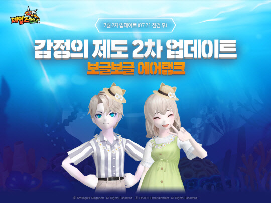 이번 업데이트로 신규 맵 '보글보글 에어탱크'도 추가됐다. 이 맵은 3대3의 팀 전으로 진행되며 감정의 제도의 두 번째 나라인 슬픔의 왕국을 배경으로 하고 있다. 총 세 바퀴를 완주해야 하는 이어달리기 맵으로 한 개의 공기 탱크를 바통으로 공유하며 공기 탱크 내 에어 게이지를 소진하기 전에 완주해야 하는 규칙이 있다. 에어 게이지가 바닥날 경우에는 탈락하기 때문에 대시, 점프, 장애물 충돌에 대비해 세심한 컨트롤이 필요하다.