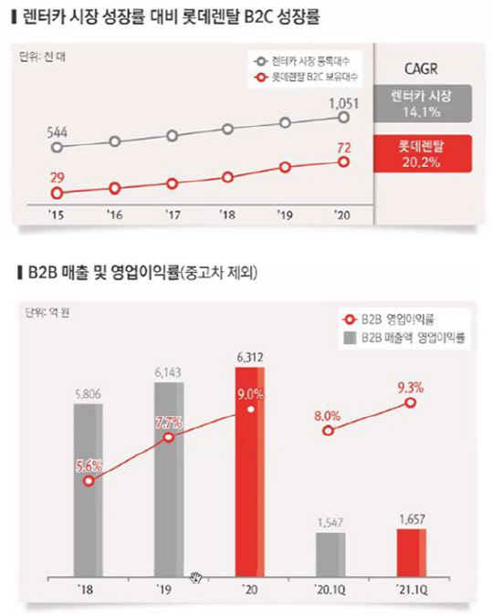 장기렌터카 부문은 홈쇼핑 론칭, 신차장 사물인터넷(IoT) 출시 등 영업채널 확대와 차별화 서비스로 높은 성장세를 보이고 있다. B2B 부문은 저가수주를 지양하고 반납센터를 통한 자산효율화로 수익성을 높이고 있다.