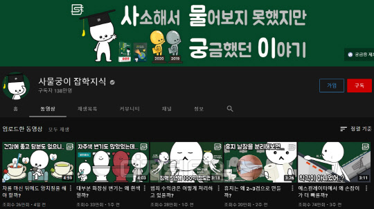 구독자 수 138만 명, 누적 조회 수 2억 1700만 회를 보유하고 있는 '사물궁이 잡학지식'은 이 분야의 독보적 1위 채널이다. 2019년 1월 첫 영상('하늘로 총을 쏘면 어떻게 될까?')을 내놓은 이래 꾸준한 인기를 바탕으로 빠르게 구독자 수를 늘리며 활동을 시작한 지 1년 만인 지난해 1월 100만 명을 돌파했다. 해당 채널은 사람들이 한 번쯤 궁금해할 만한 소소한 질문들에 대한 답을 애니메이션을 이용해 3~4분 분량의 영상으로 쉽게 설명해줘 인기가 높다. 채널 내 가장 인기 있는 영상인 '아침에 일어난 직후는 왜 이렇게 피곤할까?'의 조회 수는 무려 600만 회에 달하며, '화산에 쓰레기를 처리하면 안될까?', '벌레들은 왜 배를 보인 채 죽어 있을까?', '에스컬레이터에서 왜 손잡이가 더 빠를까?' 등의 질문을 다룬 최근 영상들이 큰 호응을 얻으며 빠르게 조회 수가 늘고 있다.