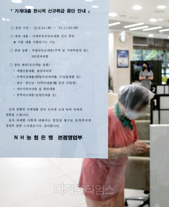 NH농협은행의 가계대출 한시적 신규 취급 중단 첫날인 24일 서울 중구 NH농협은행 본점영업부에 관련 안내문이 붙어 있다.