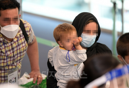 아프가니스탄에서 한국 정부 활동을 지원해온 아프간 현지인 직원 및 배우자 ,미성년 자녀, 부모 등 378여 명이 26일 인천국제공항을 통해 입국하고 있다.