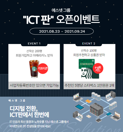 에스넷그룹(회장 박효대)은 ICT 서비스 제공을 통해 기업의 디지털 혁신을 돕는 온라인 플랫폼 'ICT판'을 오픈했다고 밝혔다.