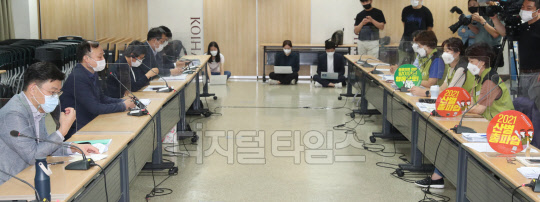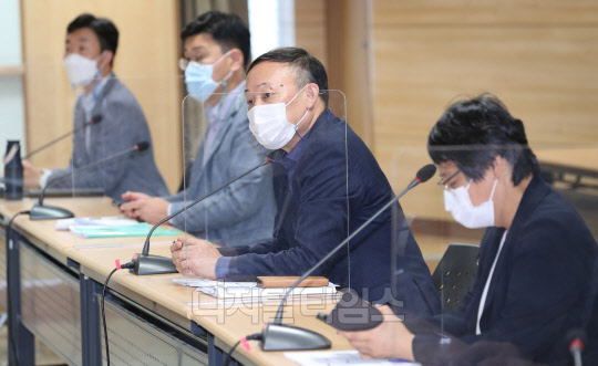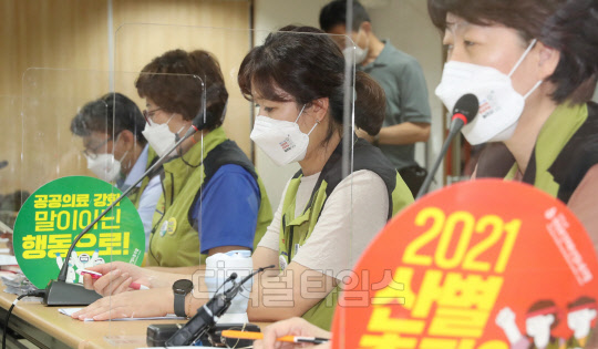 민주노총 보건의료노조 총파업을 하루 앞둔 1일 서울 여의도 의료기관평가인증원에서 열린 복지부-보건의료노조 13차노정실무교섭에서 이창준 보건의료 정책관이 모두발언을 하고 있다.