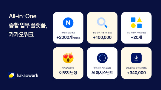 카카오워크는 출시 1년 만에 다양한 기업·단체 고객 유치에 성공하며 누적 가입 유저 약 45만명을 돌파했다. 현재 동원그룹, GC녹십자, 위메이드, 경동물류 등 약 16만여곳 기업들을 비롯해 벤처기업, 자영업자, 학교 등 다양한 규모의 기업과 단체·조직이 카카오워크를 활용하고 있다.