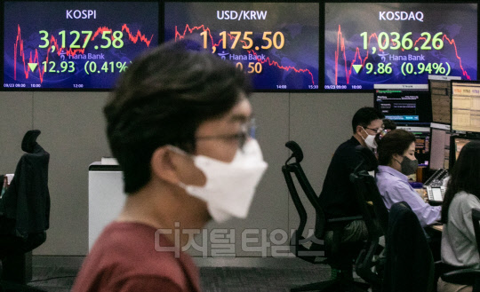 [포토] 코스피 0.41% 하락한 3127.58 마감, 헝다 우려에도 `선방`