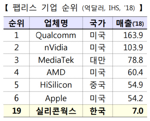 파운드리 톱 5 가운데 미국 업체는 단 1개 뿐이고 점유율도 10% 남짓에 불과하다. 팹리스와 파운드리는 '이와 잇몸' 같은 관계이기 때문에 미국 반도체 업계에서는 대만과 한국의 도움이 반드시 필요하다.