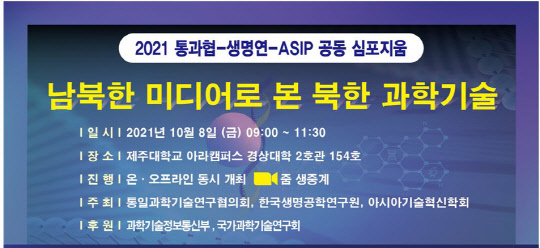 통일과학기술연구협의회(이하 통과협)는 한국생명공학연구원, 아시아기술혁신학회 등과 공동으로 지난 8일 제주대 아라캠퍼스에서 '남북 과학기술 협력을 위한 심포지엄'을 열었다고 11일 밝혔다. '남북한 미디어 본 북한 과학기술'을 주제로 열린 이 행사에선 변학문 계레하나평화연구센터 소장의 '북한 로동신문의 과학기술 기사 유형과 동향', 양홍진 한국천문연구원 책임연구원의 '미디어 속 북한 과학기술과 남북 과학기술 용어' , 송재령 녹색기술센터(GTC) 선임연구원의 '김정은 시대, 한국 언론의 북한 과학기술 보도' 등에 주제발표가 진행됐다.