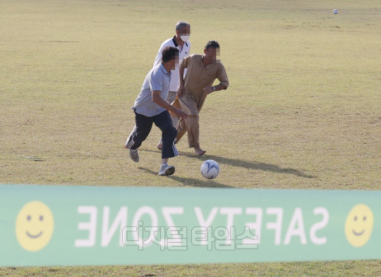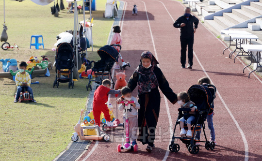 13일 충북 진천군 국가공무원 인재개발원 운동장에서 아프가니스탄 특별기여자들이 야외 활동을 하고 있다.