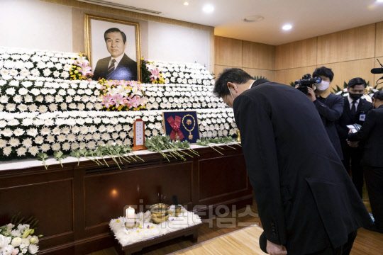 이재용 삼성전자 부회장이 27일 서울 종로구 서울대병원에 마련된 노태우 전 대통령 빈소를 찾아 조문하고 있다. 노 전 대통령은 지난 26일 향년 89세를 일기로 별세했다.