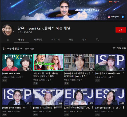 개그우먼 강유미는 코미디 채널인 '강유미 좋아서 하는 채널'에서 '유미의 MBTI들' 시리즈를 선보여 최근 큰 인기를 끌고 있다. MBTI 유형별 특징에 맞춰 분장과 의상, 행동과 말투를 모두 다르게 연기하며 다양한 상황에서의 유형별 반응을 코믹하게 풀어내, 게재하는 영상마다 적게는 20만 회부터 많게는 100만 회까지 높은 조회 수를 올리고 있다. 영상들 아래에는 "내가 INTP인데 너무 공감 간다", "너무 완벽하게 재현했다", "미친 디테일이네" 등 시청자들이 남긴 공감과 감탄의 댓글이 다수 달려있다.