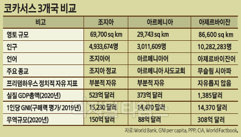 1990년대초 독립 후 동유럽 편입 민족 대립·영토 분쟁 탓 불안 지속 2008년엔 조지아-러시아 전쟁도 中 '일대일로' 일환 코카서스 관통 중앙~서아시아 경제회랑 추진하자 EU, 유럽~코카서스~亞 연결 맞불 경제발전 기대감… 교류 확대 필요