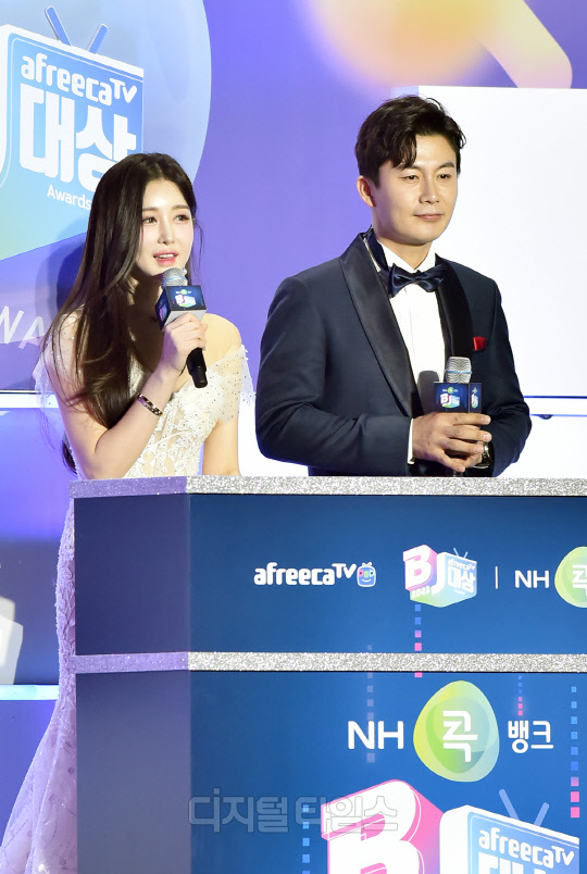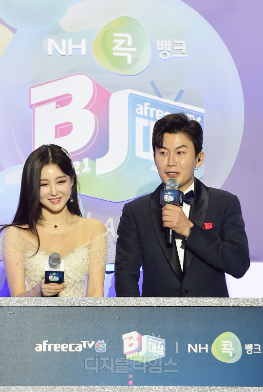 [포토]BJ 박가린-방송천재까루, 아프리카TV 시상식 진행으로 입맞춤