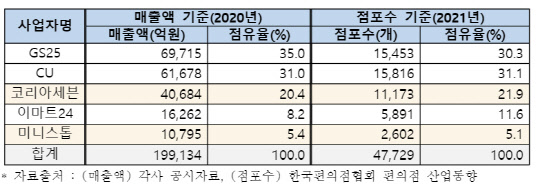여기에 4위 사업자인 이마트24가 시장에서 약진하고 있어 시장 구조를 고착시키는 협조행위가 이어질 가능성이 낮다고 밝혔다.