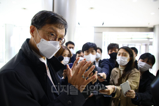 이창용 한국은행 총재 후보자가 1일 서울 중구 세종대로 부영태평빌딩에 마련된 인사청문회 사무실로 출근하며 취재진의 질문에 답하고 있다. 사진공동취재단