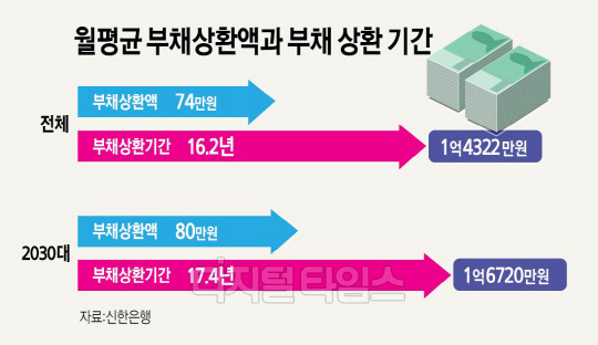최근 1년 새 집을 산 2030세대는 대출 금액이 큰 탓에 매월 평균 80만원을 부채 상환에 쓰고 있었다. 이는 조사 대상(20∼64세)의 전체 평균인 74만원 보다 많다.