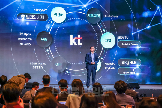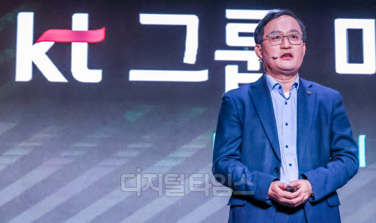 강국현 KT커스터머부문장 사장이 7일 서울 송파구 소피텔 앰배서더 호텔에서 열린 KT그룹 미디어데이에서 발표하고 있다.