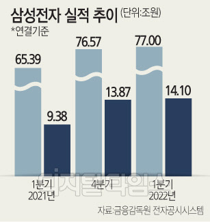 삼성전자는 지난해 3분기 73조9800억원의 매출을 올리며 분기 매출 첫 70조원을 돌파했고, 4분기에 역대 최고인 76조5700억원을 기록한 데 이어 세 분기 연속 매출 최고기록을 경신했다. 영업이익의 경우 1분기 기준으로는 지난 2018년(15조6400억원) 에 이은 두 번째로 높은 실적을 거뒀다.