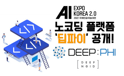 딥노이드는 'AI를 우리의 일상으로' 주제로 전시 부스를 마련하고, AI를 누구나 이용이 가능하도록 노코딩 플랫폼 '딥파이(DEEP:PHI)' 서비스를 공개한다. 코딩을 전혀 몰라도 파워포인트나 포토샵처럼 마우스 클릭만으로 사용자가 데이터만 업로드하면 각각의 모듈화된 파이프라인을 통해 데이터 전처리, 인공지능 학습, 임상검증등 모듈화된 블록을 조합하는 것만으로도 AI모델 구축이 가능하다.