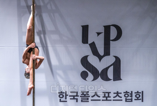 29일 서울 은평문화예술회관에서 열린 2022 한국폴스포츠선수권대회에서 참가자들이 멋진 연기를 선보이고 있다.