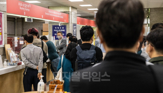 윤석열 대통령 취임 기념우표 판매가 시작된 10일 서울 종로구 광화문우체국에서 시민들이 우표를 사기 위해 대기하고 있다.