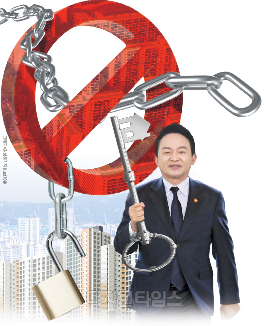 원 장관은 아울러 이날 주택담보대출비율(LTV)·총부채원리금상환비율(DSR), 재개발·재건축 사업, 금융·세제 등의 규제 정상화도 약속했다. 다만 시장의 혼란을 방지하기 위해 질서 있게 실행하겠다고 덧붙였다.
