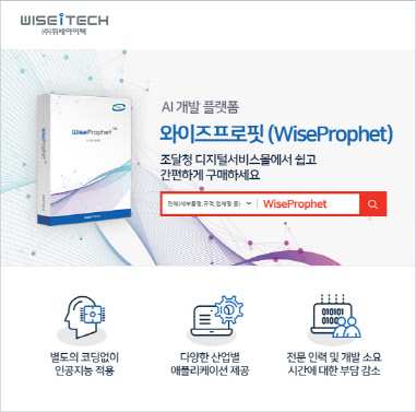 AI(인공지능)·빅데이터 전문기업 위세아이텍(대표 김종현)은 자사 AI 개발 플랫폼 '와이즈프로핏(WiseProphet)'이 IT 상품과 서비스 전용 공공조달 플랫폼인 '조달청 디지털서비스몰'에 등록됐다고 밝혔다.