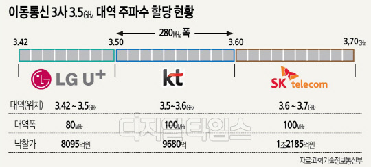 그동안 논란의 대상이던 5G 주파수를 최종 할당키로 하면서, 이동통신 3사간 표정이 극명하게 엇갈리고 있다. LG유플러스는 5G 주파수로 사용중인 3.40∼3.42㎓ 인접대역을 추가 확보할 수 있다는 점에서 크게 반기는 분위기다. LG유플러스 관계자는 "정부의 할당 공고 일정에 맞춰 추가 주파수 확보를 위해 최선을 다하겠다"며 "이번 할당으로 추가 주파수를 확보하게 되면, 적극적인 5G 투자를 통한 품질 향상으로 이용자 편익 증진을 위해 노력하겠다"고 말했다.
