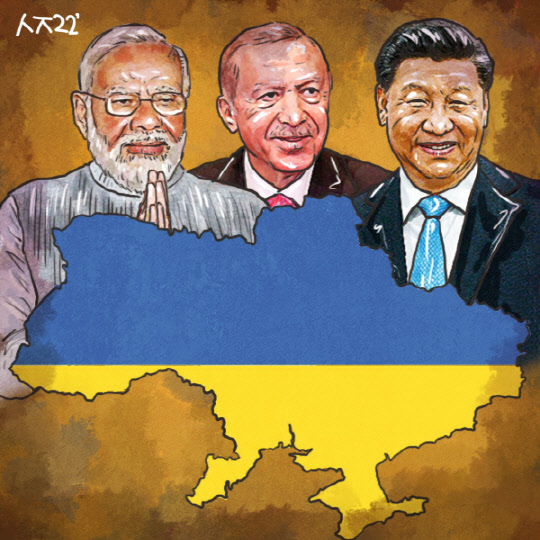 지난달 30일 끝난 이번 나토(NATO·북대서양조약기구) 정상회의의 최고 수혜국은 튀르키예(옛 터키)다. 튀르키예는 우크라이나 전쟁으로 러시아로부터 위협을 느낀 스웨덴과 핀란드가 나토에 가입하려 하자 반대했는데, 지난달 28일 갑자기 찬성으로 돌아섰다. 그 직후 미국은 튀르키예의 숙원이었던 최신예 전투기 F-16 40대를 튀르키예에 판매하기로 했다고 발표했다. 29일 스페인 마드리드 나토 회의장에서 열린 바이든 미 대통령과 레제프 타이이프 에르도안 튀르키예 대통령간 양국 정상회담은 어느 때보다 화기애애했음은 두말할 나위 없다. 결국 튀르키예는 나토의 비토권을 자기 잇속을 챙기는데 활용한 셈이고 그 배경에는 우크라이나 전쟁이 있다. 남의 불행 와중에 내 행복을 챙긴 것이나 다를 게 없는 것이다. 튀르키예처럼 우크라이나 전쟁의 뒤에서 잇속을 챙기는 국가들이 있다. 튀르키예 외에 인도와 중국이 대표적이다.