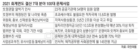 '2021년 회계연도 결산심사'서 7대분야 100개 문제사업 지적 "재정낭비 막을 밑거름 삼을 것"