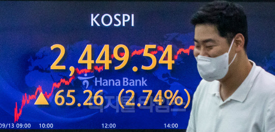 [포토] 코스피 2%대 급등, 2449에 마감