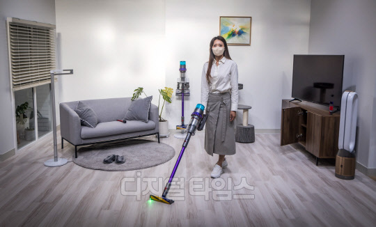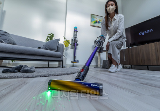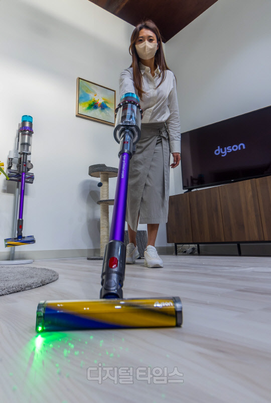 21일 서울 성동구 레이어57에서 다이슨 관계자가 '다이슨 헤파 무선 청소기 다이슨 Gen5 디텍트'를 시연하고 있다. '다이슨 헤파 무선 청소기 다이슨 Gen5 디텍트'는 제품 전체에 헤파 필터레이션 기술이 적용돼 0.1마이크론만큼 작은 입자를 99.99% 포착하도록 설계된 것이 특징이다.