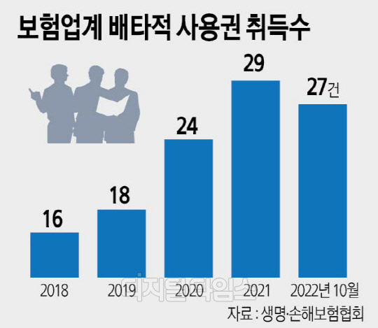 최근 들어선 보험사의 규모와 관계없이 배타적 사용권 획득 경쟁이 벌어지고 있다.