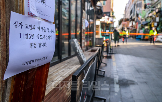 31일 서울 용산구 이태원 사고 현장 인근 상점에 휴점을 알리는 안내문이 각각 붙어 있다.