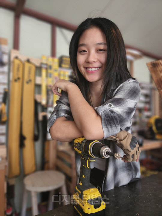 하지만 나무를 자르고 못을 박는 그녀의 손놀림은 여느 베테랑 목수들과 다르지 않다. 툴벨트 셋팅 '꿀팁'을 알려주고 공사 현장 '인싸템'을 추천하는 그녀에게서 숙련된 목수티가 난다.