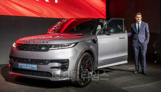 로빈 콜건 재규어 랜드로버코리아 대표가 11일 서울 강남구 서울옥션 강남센터에서 열린 '올 뉴 레인지로버 스포츠' 사전 공개 행사에서 포즈를 취하고 있다.