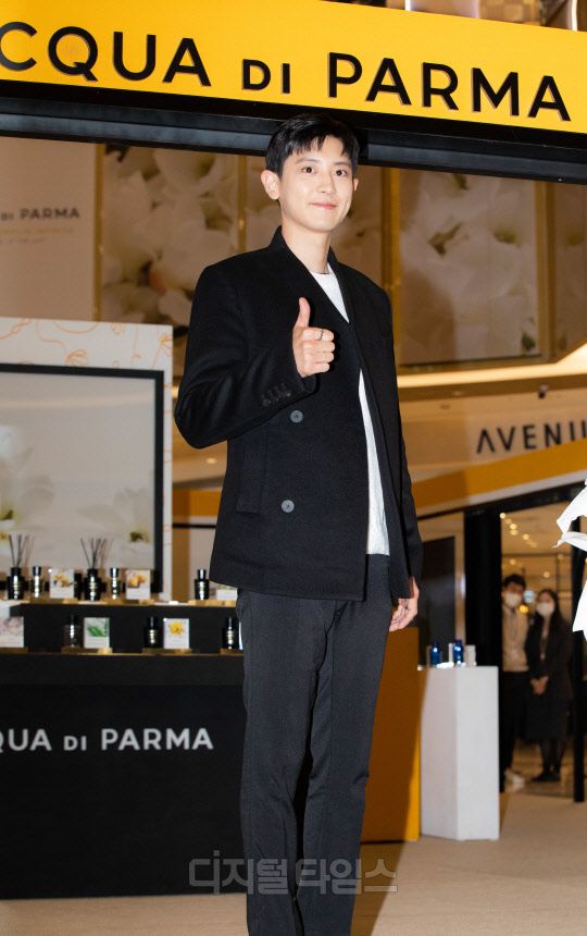 엑소의 찬열이 18일 서울 송파구 잠실 롯데월드몰에서 열린 향수 브랜드 '아쿠아 디 파르마' 팝업 스토어 오프닝 기념 포토콜 행사에 참석해 포즈를 취하고 있다.