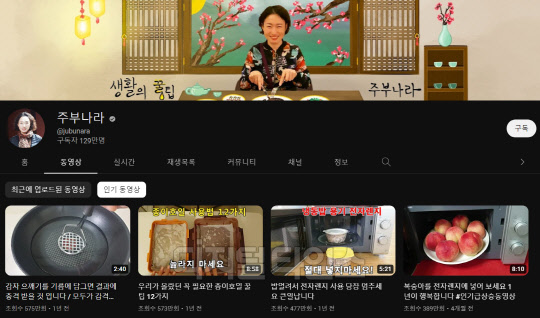 살림의 신 유튜버 '주부나라' 베란다서 봉지로 채소 기르는 법 등 켜켜이 쌓인 노하우 구독자에 전수 친구 시어머니 등 대가 비법도 전달 격식 없는 모습에 자취생들 '호평' 어느덧 129만명… 랜선 엄마 등극