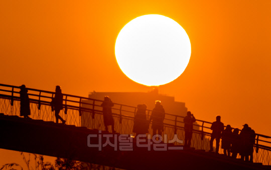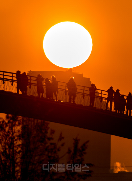 2023년 계묘년(癸卯年) 새해 첫 날인 1일 서울 영등포구 선유도공원 선유교에서 시민들이 일출을 보고 있다.