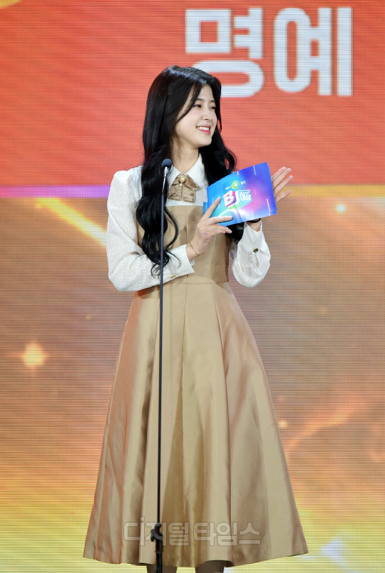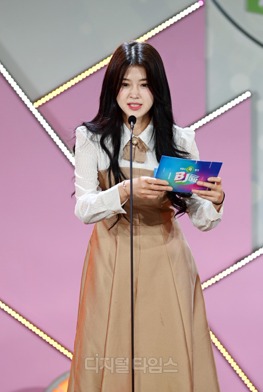 BJ 문월(본명 이예슬)이 30일 서울시 서초구 aT센터에서 진행된 'NH콕뱅크와 함께하는 2022 아프리카TV BJ대상'에서 시상을 하고 있다.