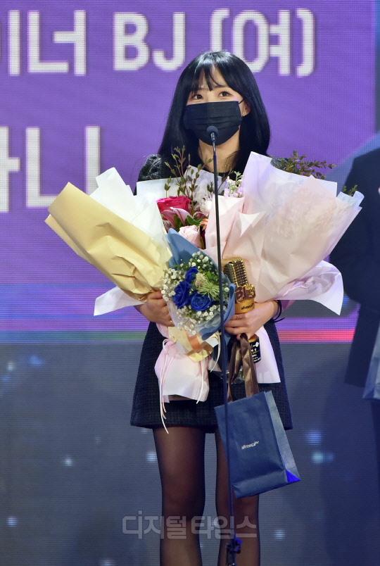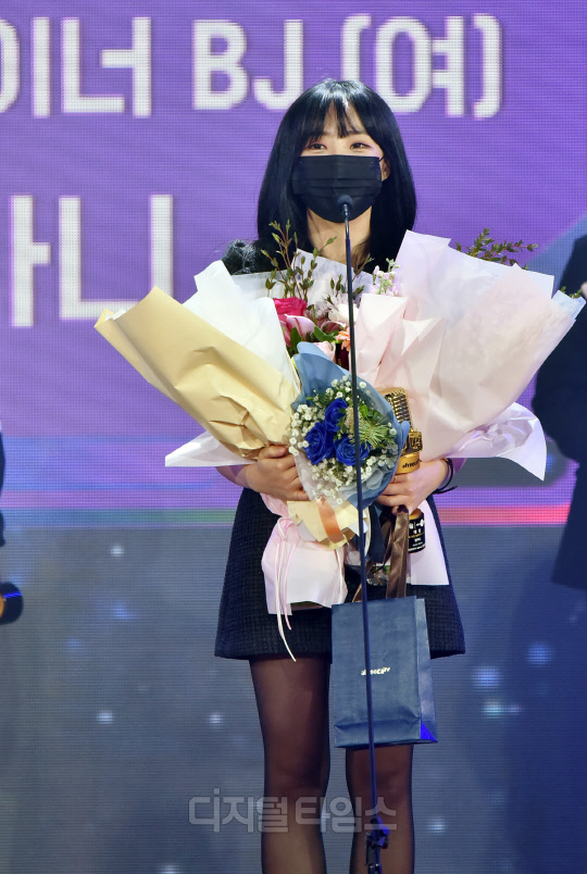 BJ 임아니(본명 임선아)가 30일 서울시 서초구 aT센터에서 진행된 'NH콕뱅크와 함께하는 2022 아프리카TV BJ대상'에서 BJ대상 게임 엔터테이너 부문을 수상했다.