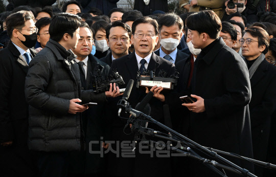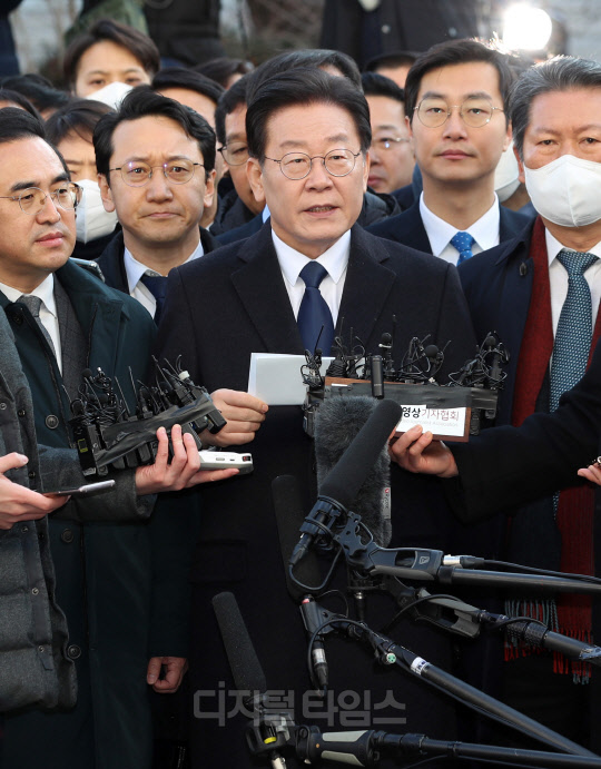 [포토] 검찰 포토라인에 선 이재명 대표