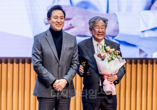 오세훈(왼쪽) 서울시장이 16일 중구 서울시청에서 열린 '서울특별시 홍보대사 감사패 수여 및 위촉식'에서 배우 최불암과 기념촬영을 하고 있다.