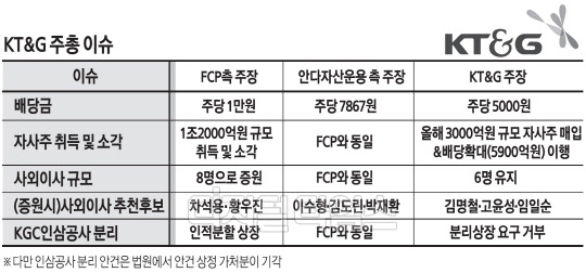 KT&G "자사주 3000억원 매입 배당금 5900억 확대" 밝혔지만 FCP·안다운용, 배당 확대 요구 전문가 "중장기 성장 해칠 우려"