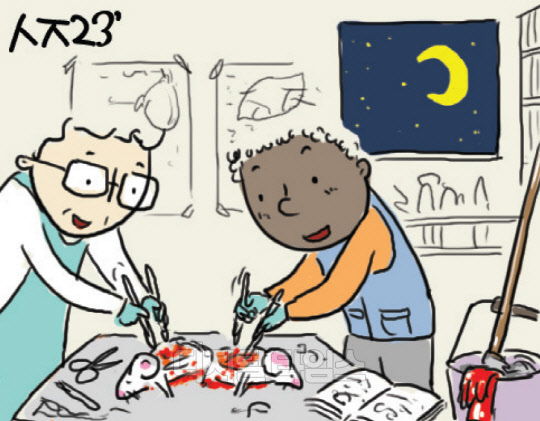 그런데 우연히 이 노트가 의사인 블래록의 눈에 띄게 된다. 그 아이디어의 탁월함을 한 눈에 알아본 블래록은 토마스와 함께 매일 밤 동물실험을 지속적으로 했다. 청소부 신분의 토마스가 정상적으로는 실험에 참석할 수 없음을 고려한 특별한 배려였다. 이런 과정을 거쳐 혈액 부족이 쇼크의 원인임을 밝혀내어 출혈로 인한 쇼크 환자를 치료할 수 있는 길을 열었다.