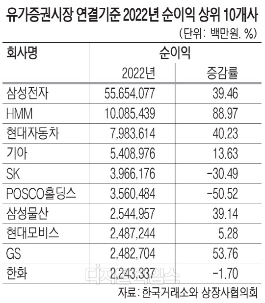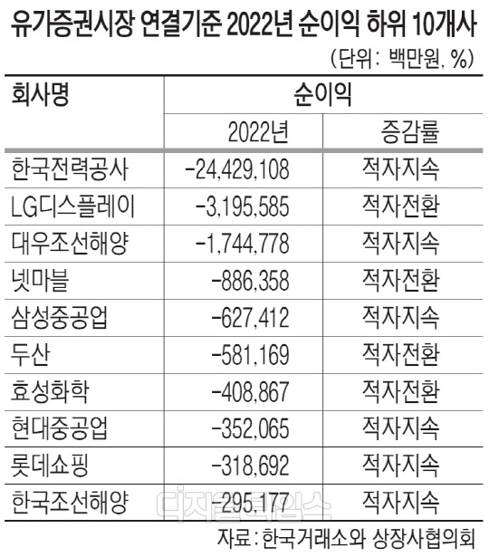 연결 매출액의 10%가량을 차지하는 삼성전자나 사상 최대 영업손실을 기록한 한국전력을 제외해도 이러한 추세는 비슷하게 나타났다.